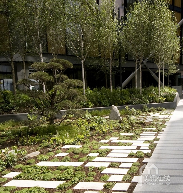 首先,對于住宅區(qū)外部空間的利用達到了極致。在每棟樓宇之間的空地以及地下空間都設(shè)計了很多的植被種植,以及曲徑通幽的