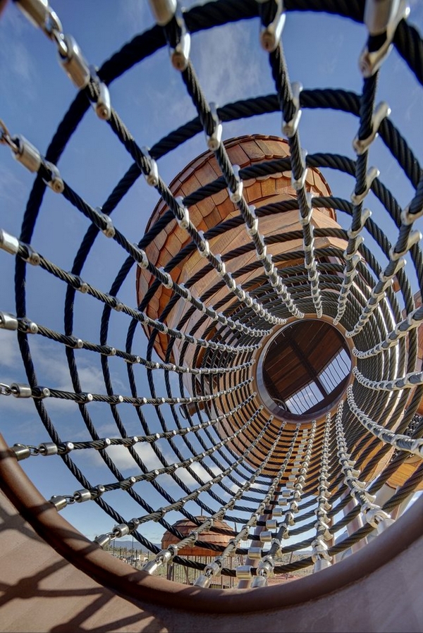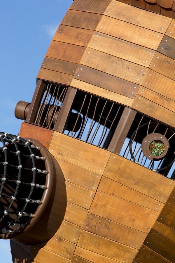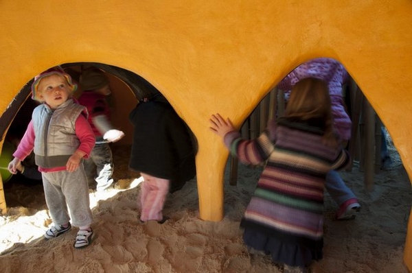 設計師將游樂場設計成了一個小型的主題公園,主題當然是圍繞著植物進行。你可以看到巨大的橡子小屋被掛在天空,“橡子”之間有管道連接,孩子們可以從這顆“橡子”爬進那顆“橡子”。還有巨大的山龍眼(Banksia,澳洲著名的代表性植物之一)圓錐體坐落在森林地表。