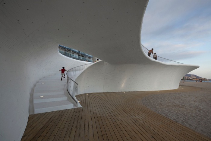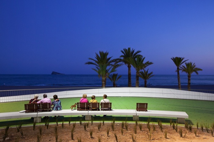 由巴塞羅那OAB建筑事務(wù)所設(shè)計,這個城市海濱景觀設(shè)計沿著貝尼多姆海灘,位于西班牙。該地點是一個受歡迎的景點,有高層建筑,長廊,且設(shè)有酒吧和水景。然而,OAB建筑事務(wù)所除了給繁華的海濱地帶創(chuàng)建了一致的元素外,同時也把一些相似的地區(qū)相互分離開來。