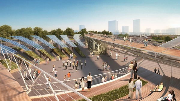 設(shè)計師為龍之翼項目開發(fā)了零碳策略,充分利用風(fēng)能、太陽能和人力發(fā)電,旨在成為中國第一個零碳高架平臺式步行系統(tǒng)。項目設(shè)計中采用了風(fēng)力渦輪機、光伏板和動能地磚。這些創(chuàng)新措施以及舒適的行人通行空間,為這一繁忙地區(qū)提供了先進的交通解決方案,它強勁的活力將使長寧區(qū)呈現(xiàn)更新穎的面貌。