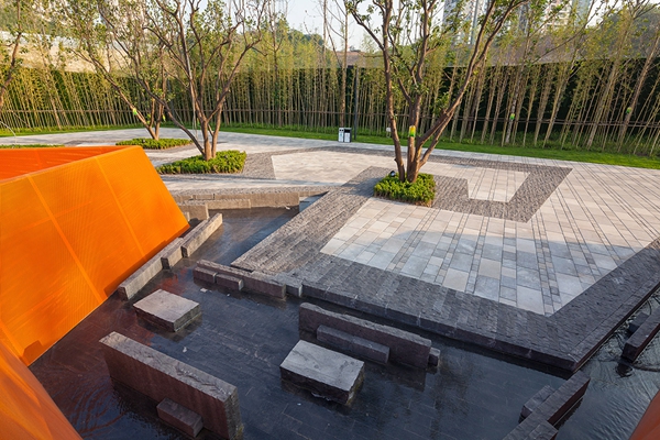 從廣場一直流向銷售中心的水元素是鳳鳴山公園的重要部分。設(shè)計(jì)師采用了水渠、水池、噴泉等不同的水景效果,不僅起到降溫的作用,潺潺的流水聲和水景營造出的氛圍更是為游人展示了一道迷人的風(fēng)景。