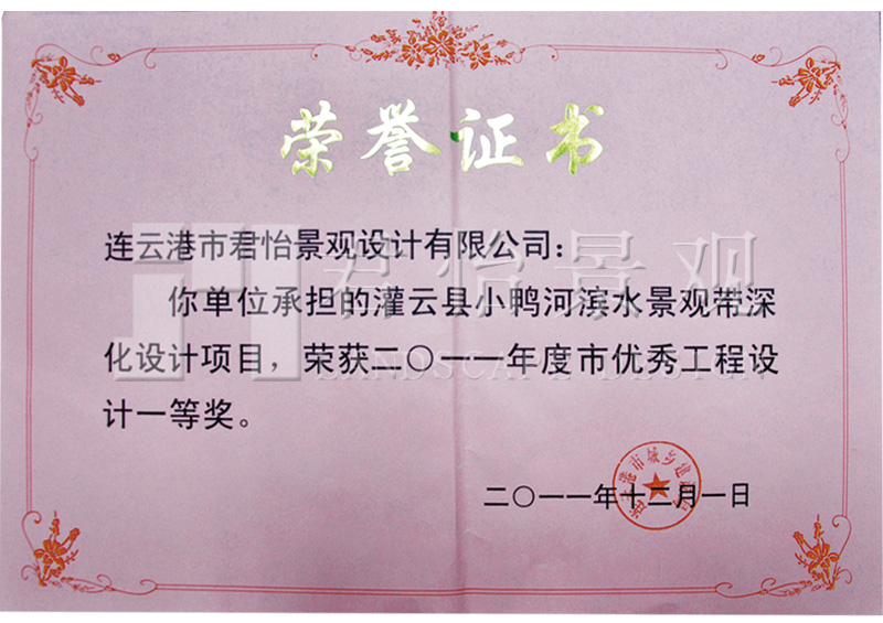 2011年獲獎(jiǎng)證書