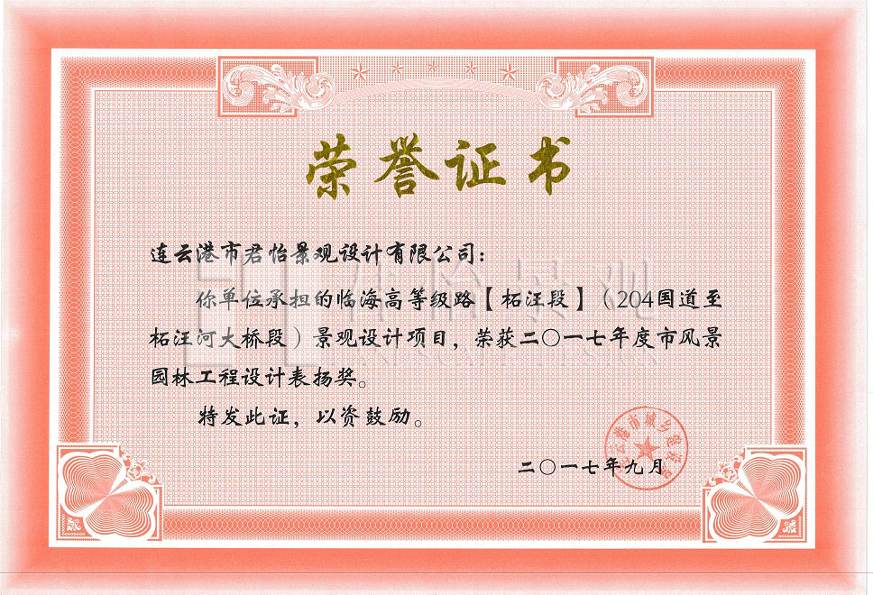 2017年獲獎證書